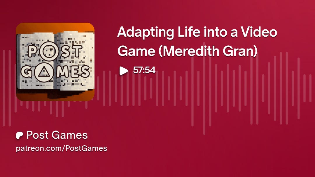 And as always, if you’d like to hear the episode early, ad-free, and with a bonus section on the history of memoir games, you can find that now at patreon.com/postgames.